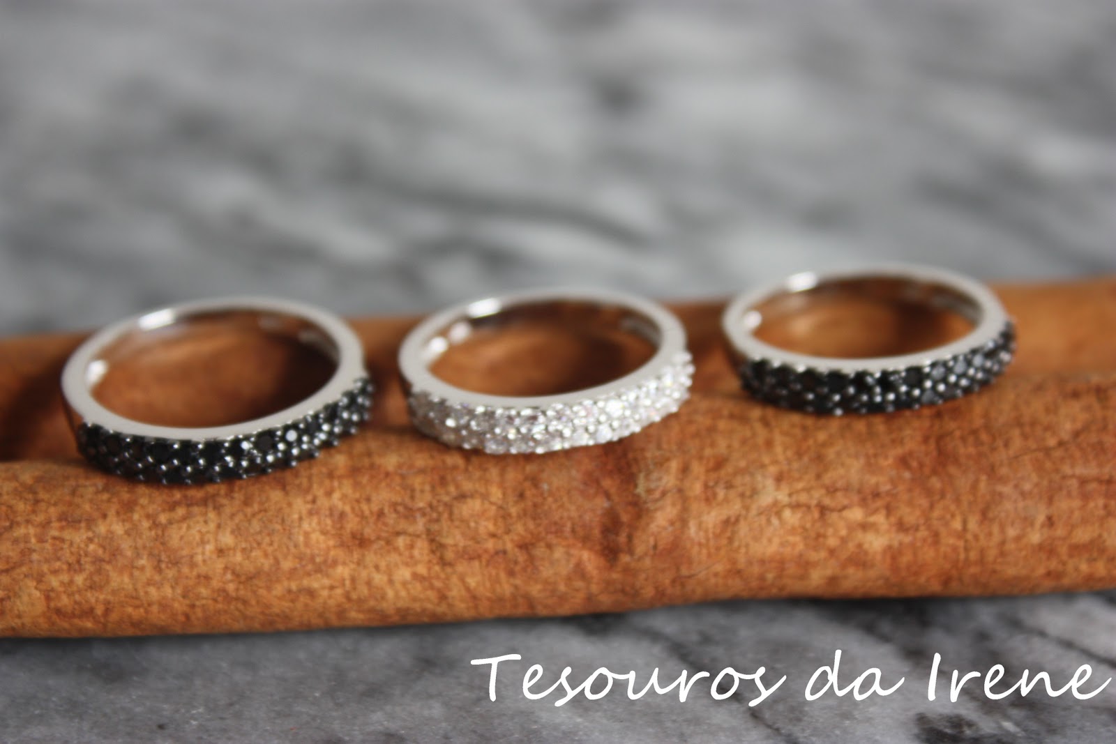 Anéis em prata rodiada com zirconias.